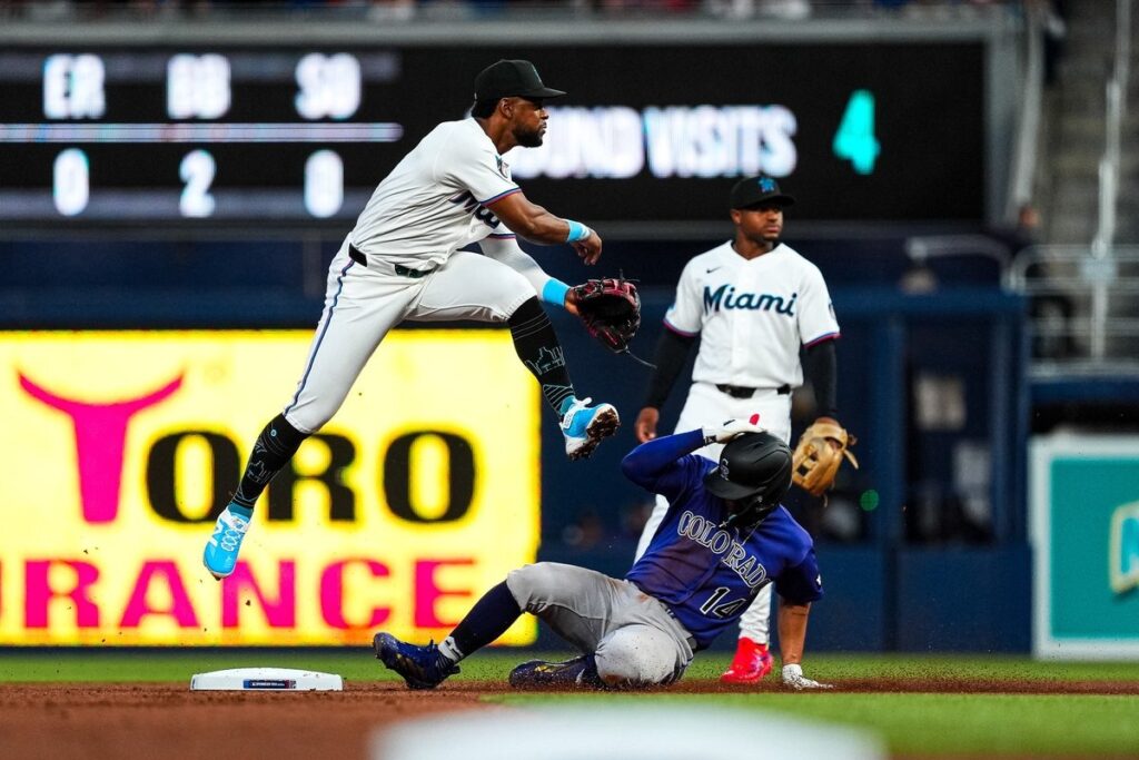 The Fightin’ Fish got to work early in the second. Xavier Edwards recorded Miami’s first hit of 2026, singling to center field. Marlins rookie Owen Caissie followed up with an RBI double, making it 1-0. Caissie wasn’t supposed to start, but Christopher Morel’s late scratch from the lineup awarded him the opportunity. Morel suffered an oblique strain. Owen concluded the night 1-for-3, scoring once. Javier Sanoja then complemented the home team’s lead with an RBI single. Newcomer Austin Slater showed off his arm during the fourth frame when Hunter Goodman lined to right field, throwing out Jake McCarthy at home. Colorado still managed to load the bases, helped in part by Sanoja’s error at third, allowing Jordan Beck to knock one in on a base hit. Alcantara struck out Brenton Doyle to get out of the inning.