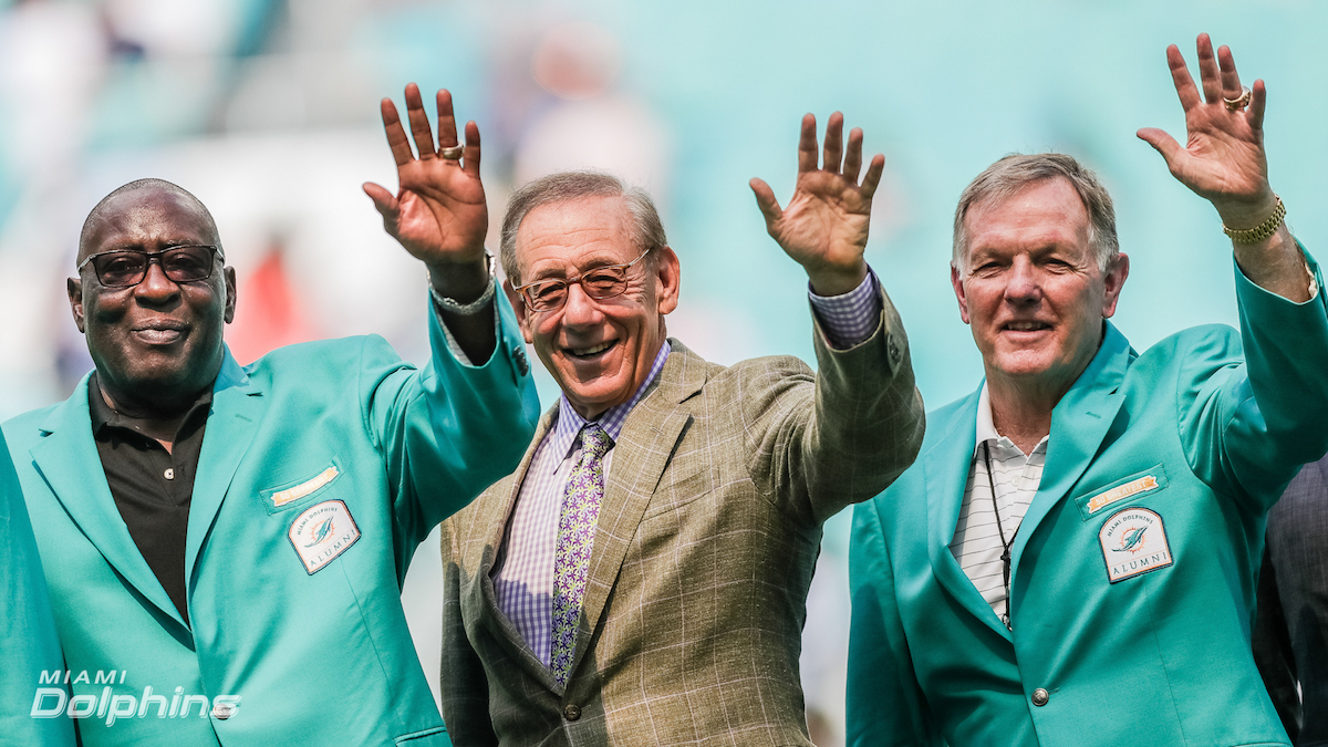 This season’s alumni weekend was special, as all season long the Dolphins are honoring the memory of two late Hall of Famers – Nick Buoniconti and Jim Langer – during the 2019 season with a special decal on their helmets. The decal features the initials “NAB” and “JJL” and was worn for the first time in the regular-season opener against the Baltimore Ravens at Hard Rock Stadium on Sept. 8. Buoniconti and Langer are two of 10 Dolphins Hall of Famers. Buoniconti passed away July 30 at the age of 78, while Langer passed away August 29 at the age of 71. The pair are the first Dolphins Hall of Famers to have passed and this the first time that the Dolphins have honored the passing of an alumnus with a helmet sticker.