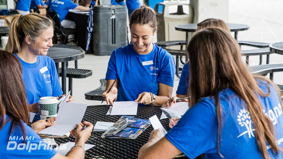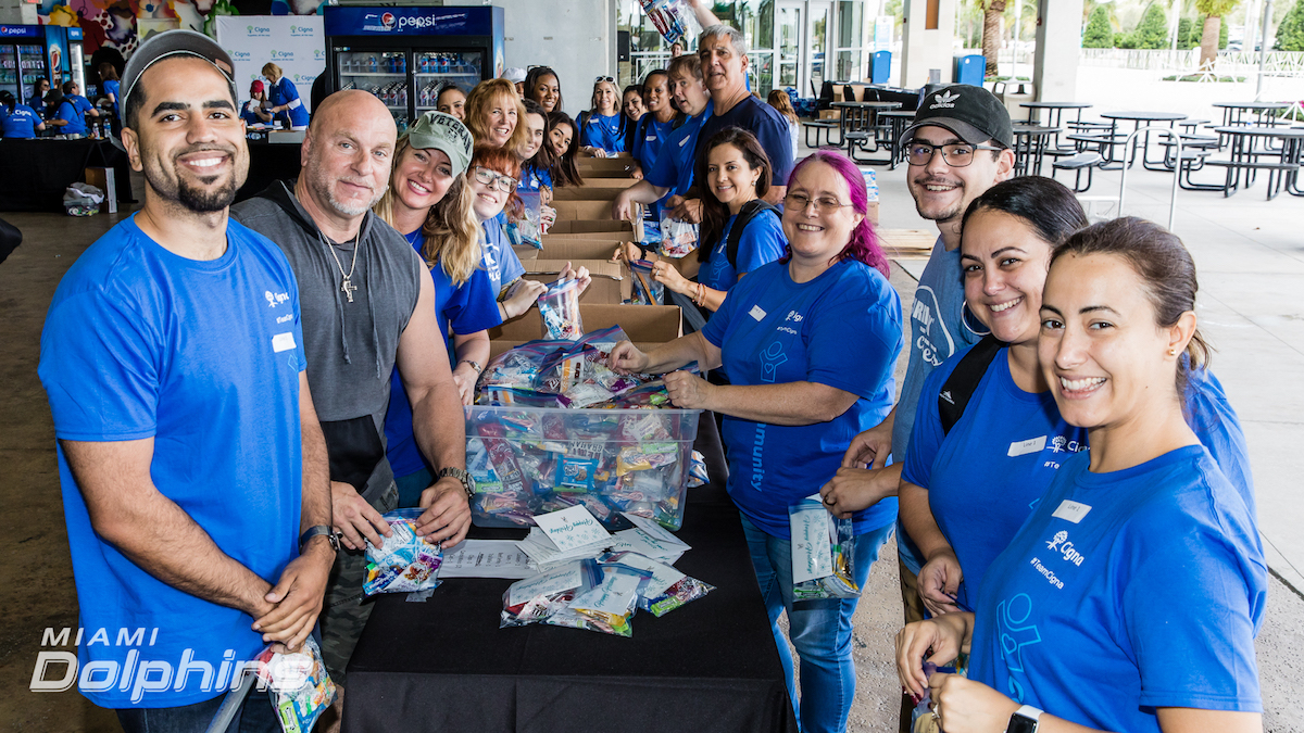 Thank you to the @MiamiDolphins, #TeamCigna and all of the volunteers who helped put together care packages for active military members today. These packages will help provide comfort to the troops who are away from their families during the holidays. #CignaFL pic.twitter.com/RBByYXlgcr