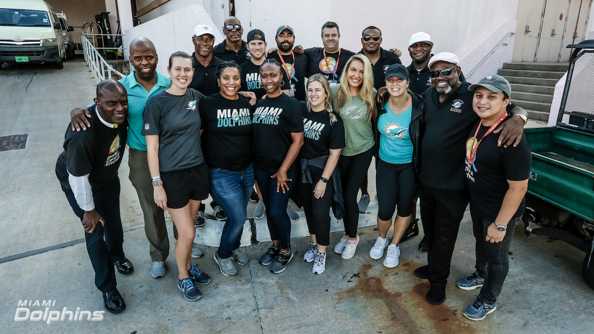 Miami Gardens, FL – During the bye week, members of the Fins organization traveled to Nassau and Freeport, Bahamas in continuing support of a series of immediate and long-term Hurricane Dorian relief rebuilding efforts for the Bahamas. The trip was part of an initiative announced by Stephen Ross to assist in relief efforts to the affected areas and their residents.