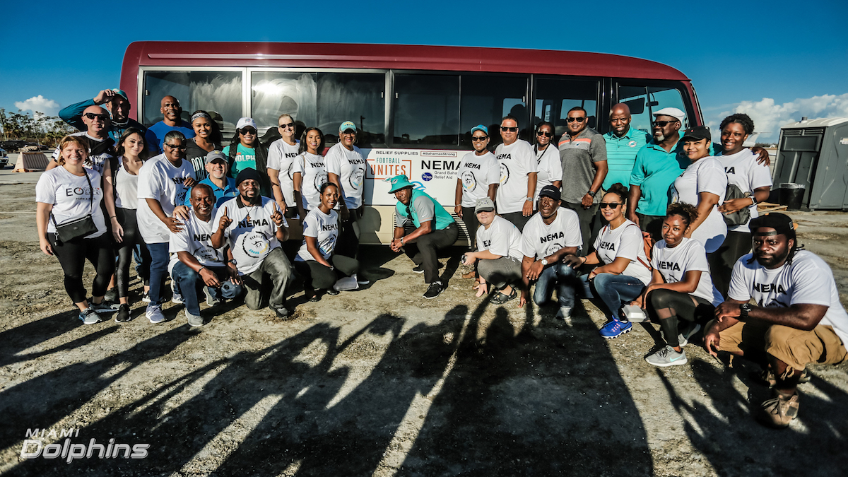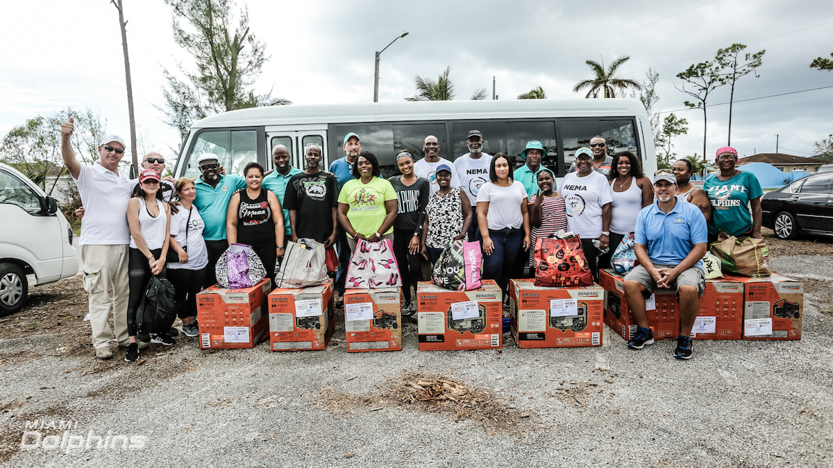 The Miami Dolphins partake in a Hurricane Dorian relief trip on October 4th, 2019. (Jose Pineiro/Miami Dolphins)