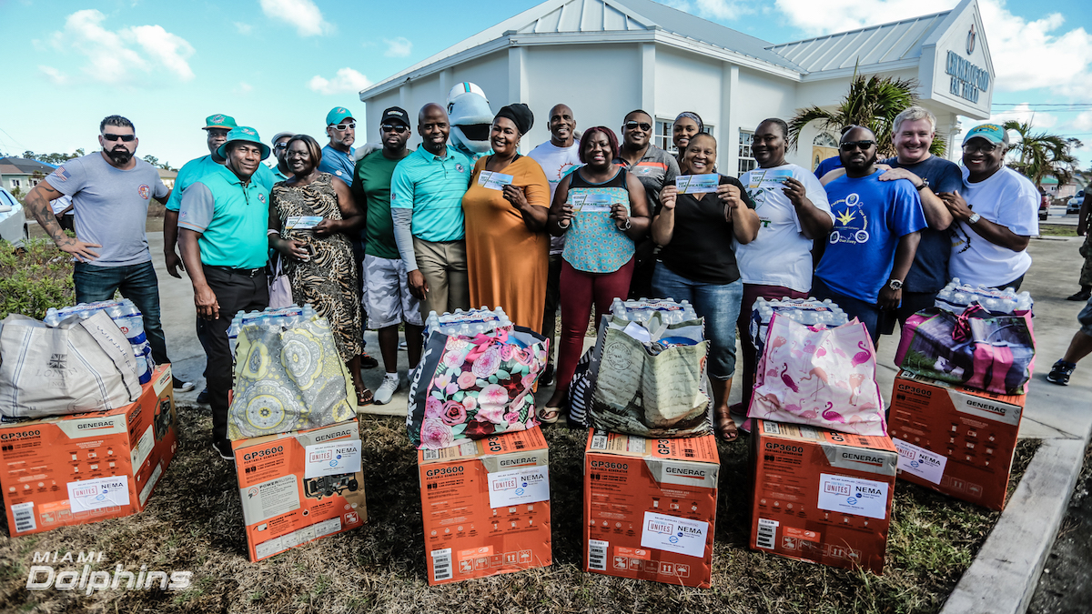 The Miami Dolphins partake in a Hurricane Dorian relief trip on October 5th, 2019. (Jose Pineiro/Miami Dolphins)