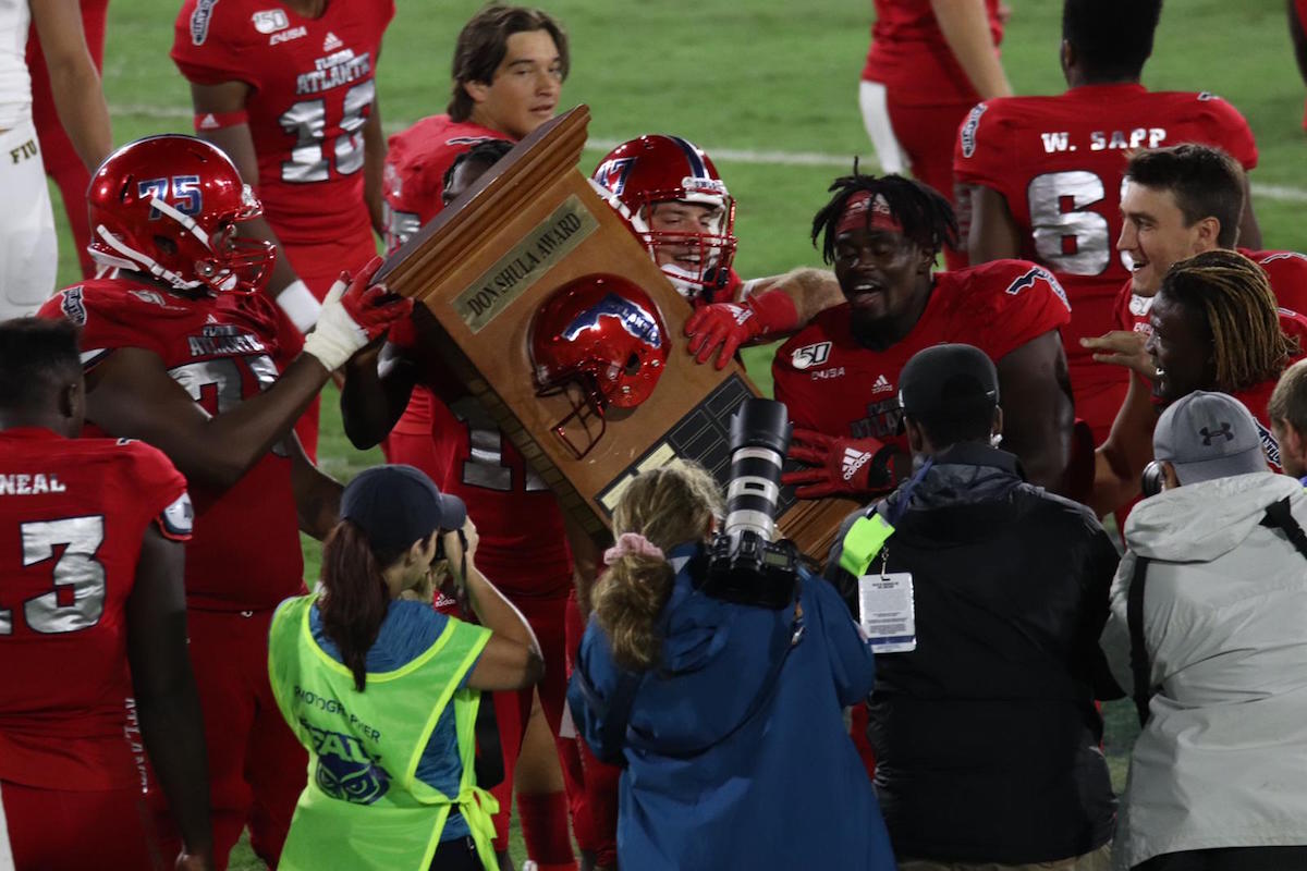 Boca Raton, FL – The 2019 Shula Bowl had implications for days. Besides bragging rights, both squads were still mathematically in the running for a chance at the Conference USA title. Despite FIU‘s terrible start, had they ran the table, along with some help from other teams, they could’ve snuck into the title game. FAU came into the game #2 in the Conference USA West Division, behind Marshall, but surpassed them in the standings with a better conference record after defeating FIU 37-7.
