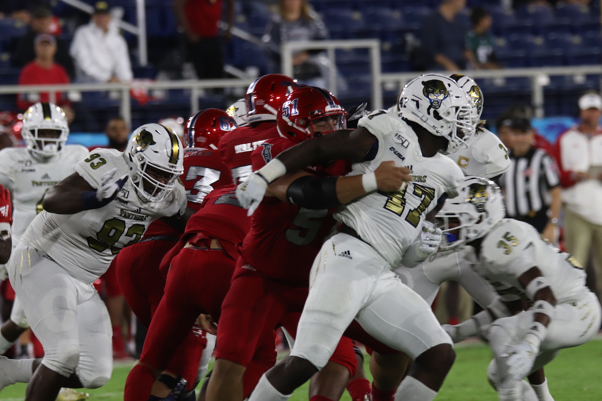 However, in the 2nd half, the Panthers came undone. The Owls scored on their opening drive, then recovered an FIU fumble and scored again. FIU couldn’t stop the run, which opened up the passing game. FAU QB, Chris Robison was 22-of-37 for 298 yards and one touchdown. Davidson scored two of his three touchdowns in the 2nd half as well.