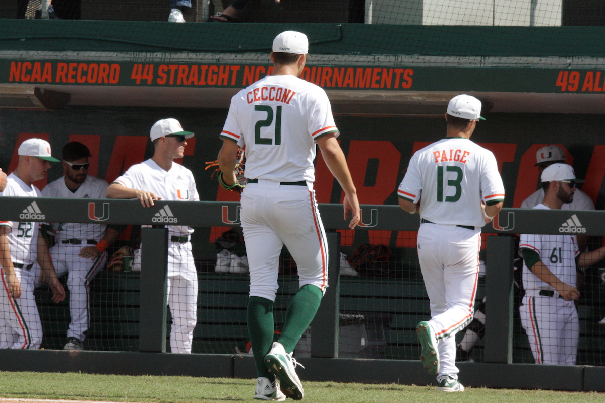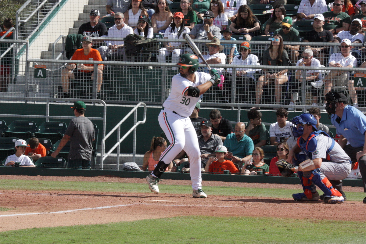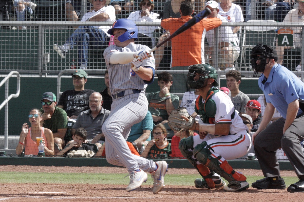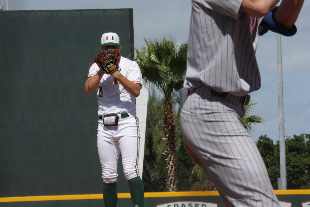 Miami, FL – What began as a weekend full of excitement and hope ended in bitter disappointment for the No. 1 Miami Hurricanes. Their offense was stifled throughout the series and Sunday was no exception. Unable to overcome the No. 2 Florida Gators, they fell 5-3 to complete the dismal sweep.
