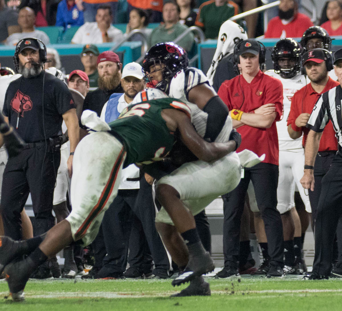 - Miami played mostly clean, committing only 5 (55 yards) penalties to Louisville’s 14 (121).