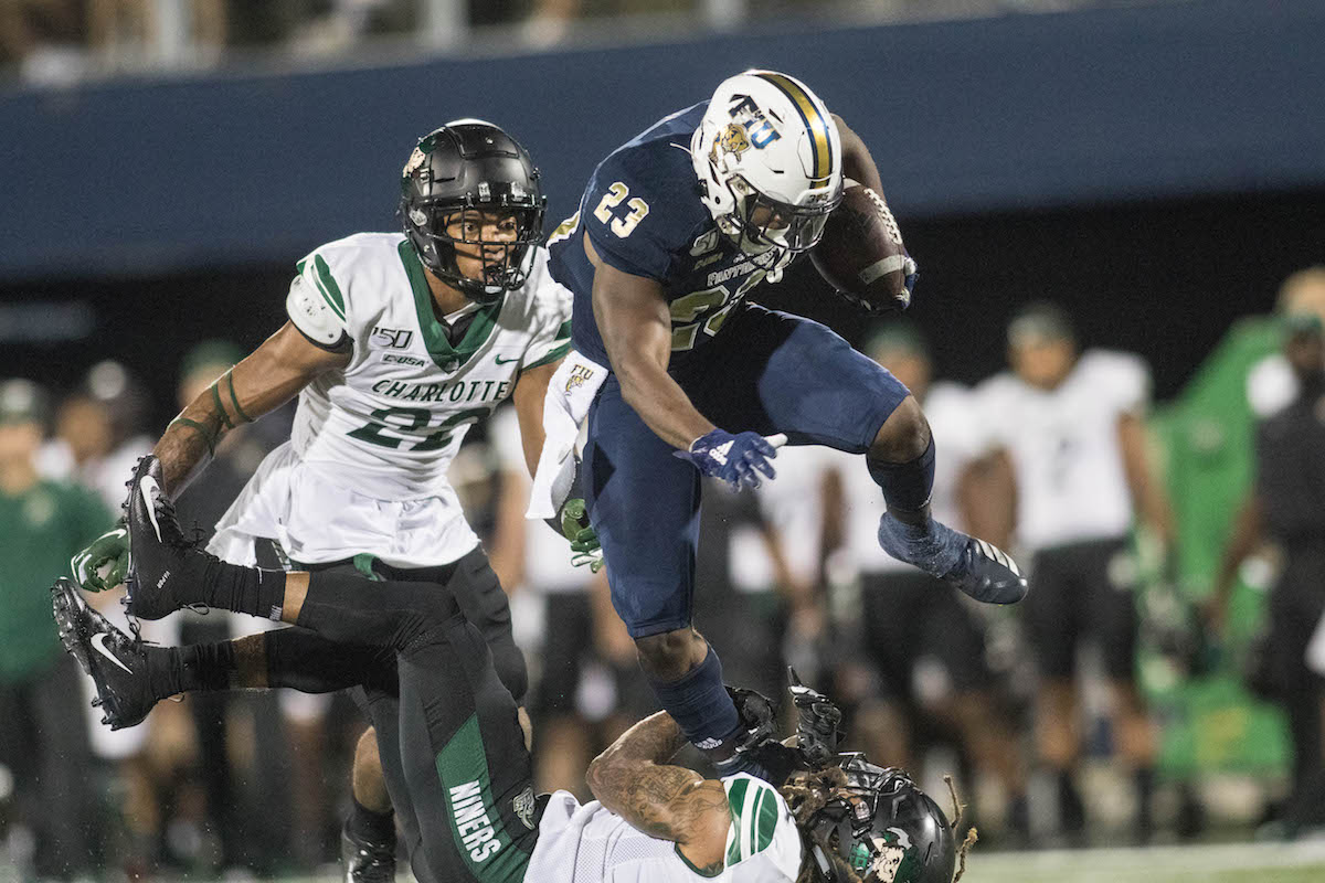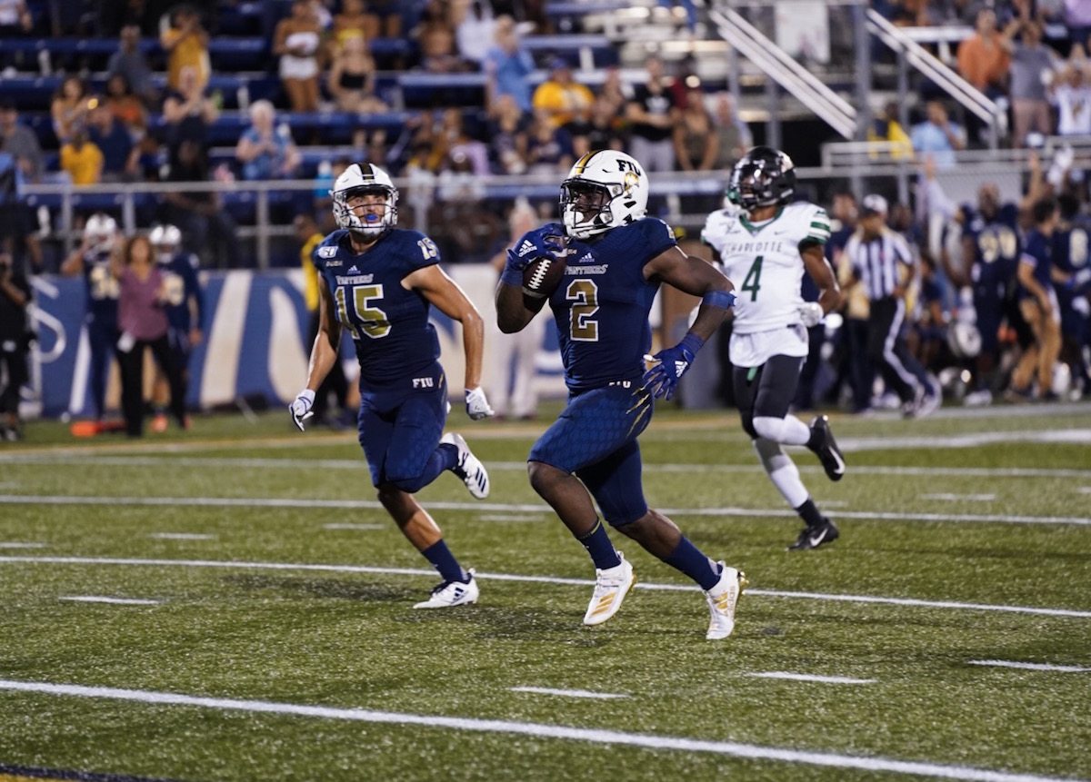 The Panthers, on the other hand, earned their 1st conference win of the season in dominant fashion, leaning on the running game and Anthony Jones’ three touchdowns! There are hat tricks in football, right? Jones must love playing against Charlotte. Last season against Charlotte, he caught both of James Morgan’s touchdown passes out of the backfield for his first trip to the endzone after returning from his unfortunate time away, recovering from a gunshot wound. In all, FIU recorded 350 rushing yards and 160 receiving yards, with both Jones (123 yards, 4 TD’s) and Napoleon Maxwell (118 yards, 1 TD) breaking out for 100+ yard games. D’Vonte Price himself had an 86 yard game on top of that. QB, Morgan threw for 160 yards and two touchdowns, and backup QB, Kaylan Wiggins rushed for a touchdown himself on their way to a 48-23 victory over the Charlotte 49ers.