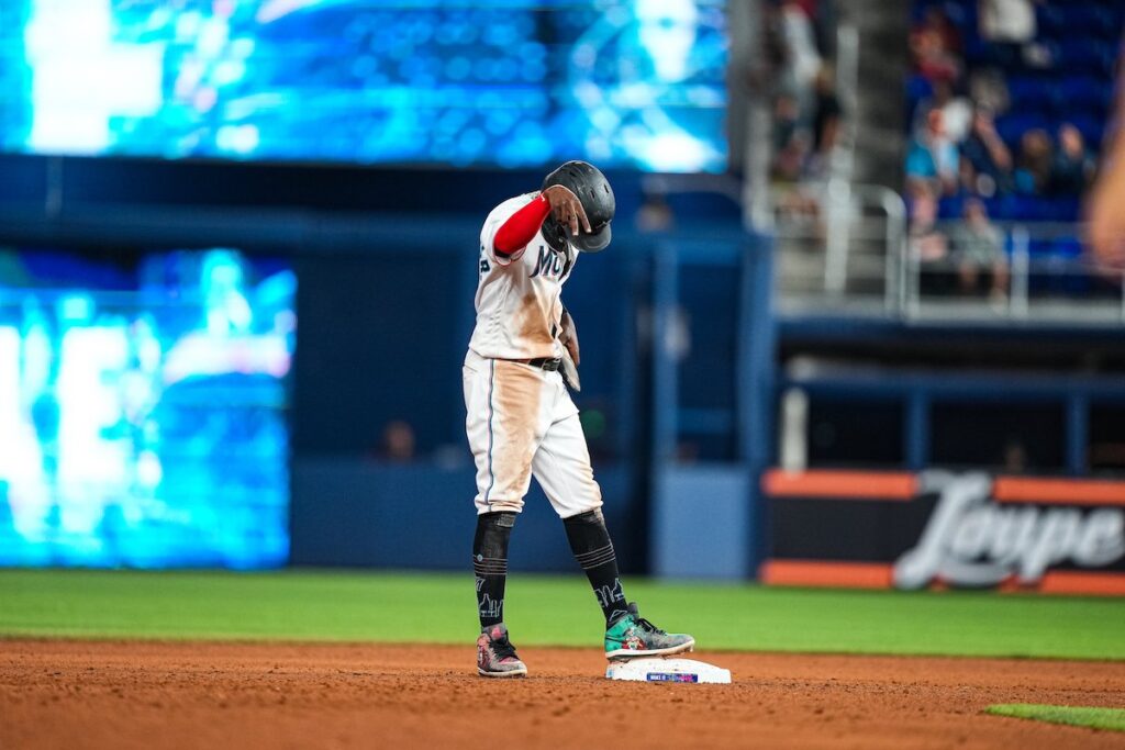 For the second straight night, Jazz Chisholm Jr. has delivered a two-out, two-run double. This one got a replay review.#Marlins down 5-2 in the seventh.
