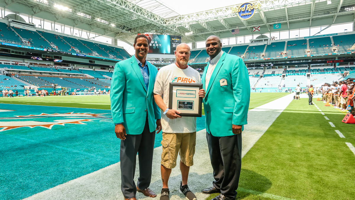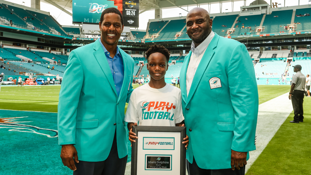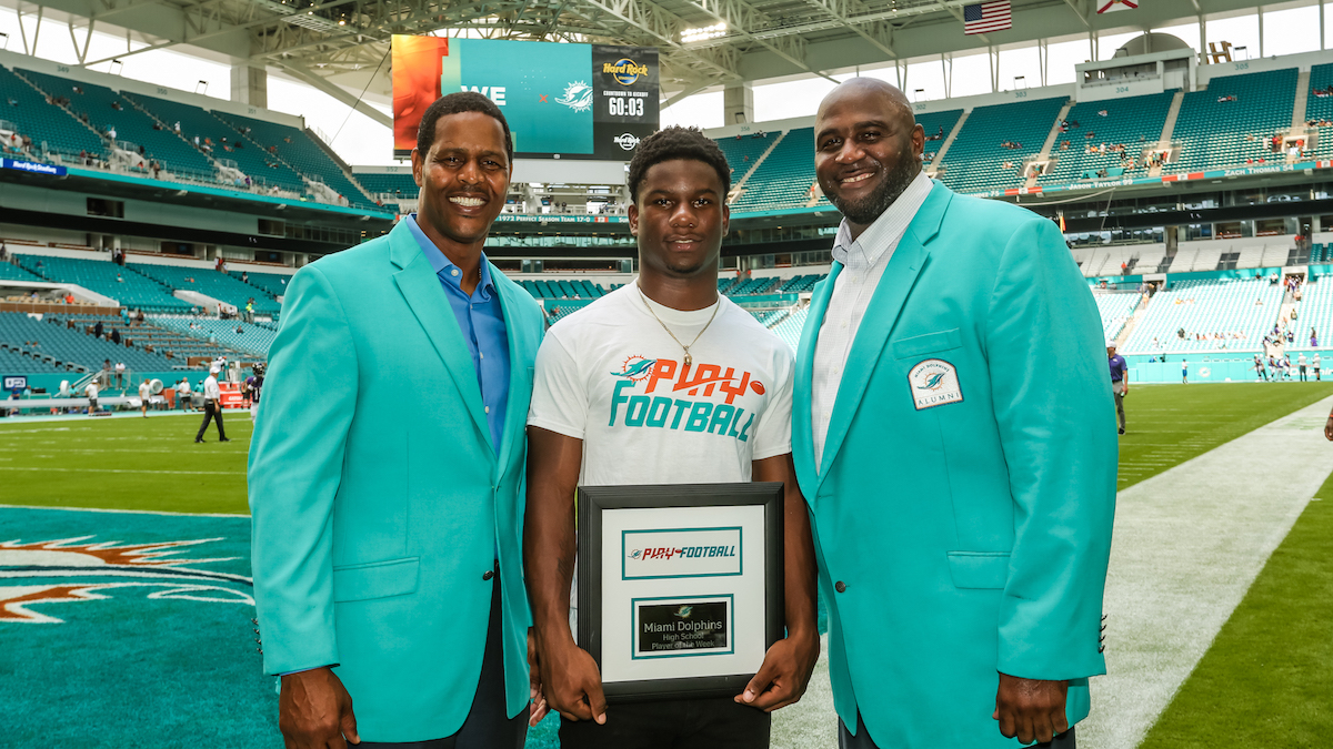MIAM GARDENS, Fla. – The Miami Dolphins announced their Play Football Week 1 award winners in a program designed to celebrate youth football in South Florida. For each home game, the Dolphins will identify a high school coach of the week, high school player of the week, youth player of the week and team mom of the week. The high school coach of the week selection will celebrate those with long-standing tenure in the coaching community, paying tribute to Don Shula’s 50th season with the Miami Dolphins organization.