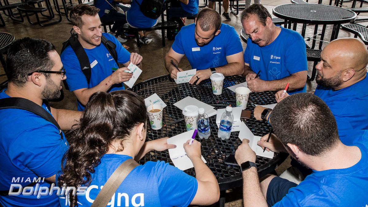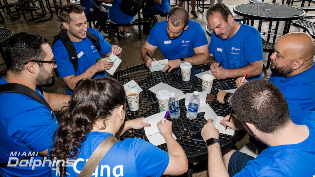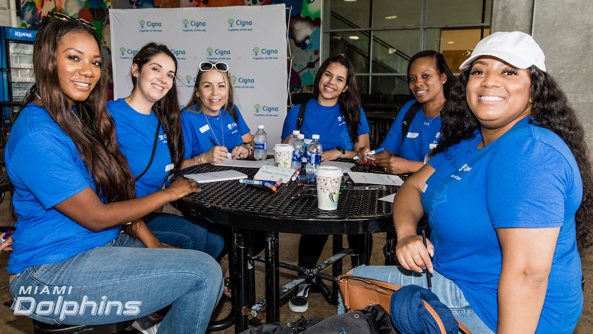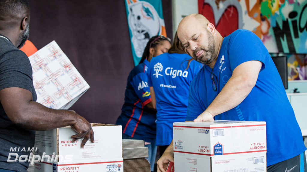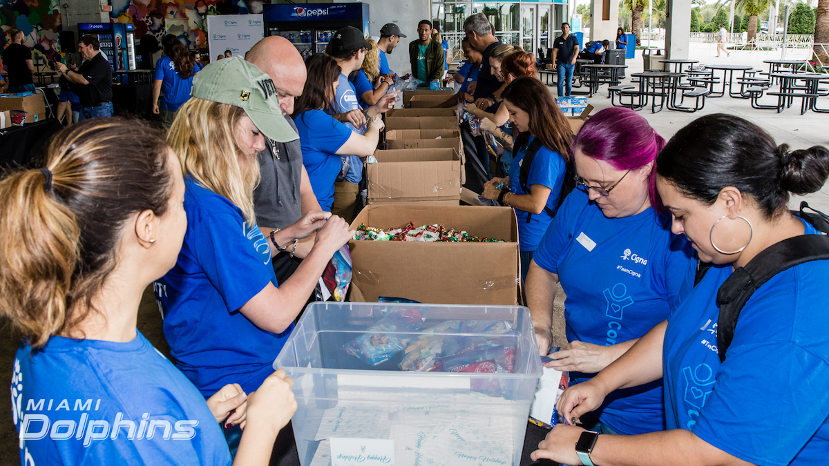 Thank you to the @MiamiDolphins, #TeamCigna and all of the volunteers who helped put together care packages for active military members today. These packages will help provide comfort to the troops who are away from their families during the holidays. #CignaFL pic.twitter.com/RBByYXlgcr