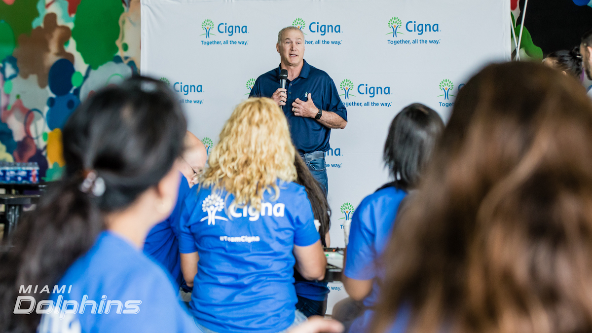 Cigna Market President for South Florida, Scott Evelyn said, “Cigna is proud to partner with the Miami Dolphins to bring holiday cheer to the men and women who serve our country. Our company is a strong supporter of the military, from sponsoring the Marine Corps Marathon to launching a free Support Line for all veterans and their families. Through today’s #DolphinsHuddlefor100 we’re sending a little piece of home to those serving overseas.”