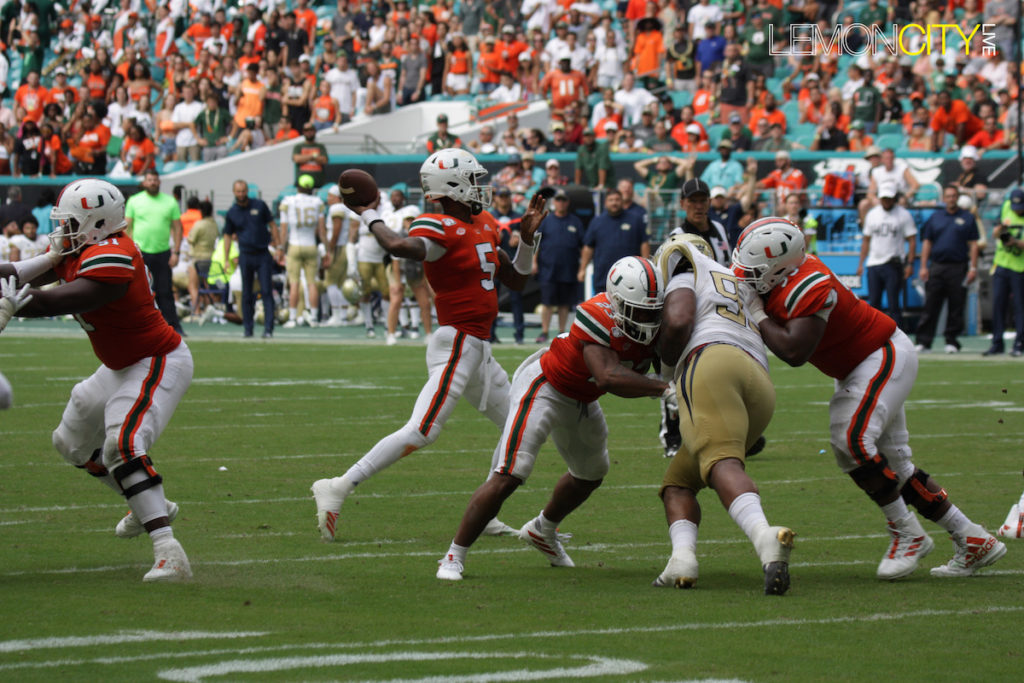 Miami, FL – The times are not good for coach Manny Diaz. The Miami Hurricanes (3-3, 1-2 ACC) lost 28-21 Saturday to the lowly Georgia Tech Yellow Jackets (1-5, 0-3 ACC) in overtime. Special teams struggled mightily, failing on all three of its field goal attempts.