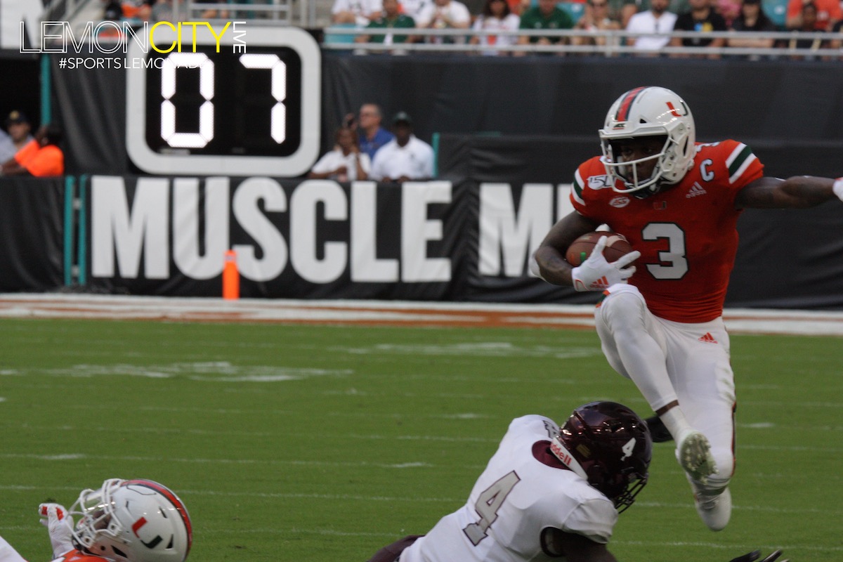 Miami, FL – The University of Miami Hurricanes took care of business in their home opener, obliterating the Bethune-Cookman Wildcats 63-0 Saturday afternoon for Manny Diaz’s first win as Head Coach. Canes running back DeeJay Dallas literally carried the day, rushing for three touchdowns including a 51-yard stroll back in the second quarter for a much-needed win at Hardrock Stadium. He accumulated 108 yards on a day where the offense was all over the Wildcats for much of the game.