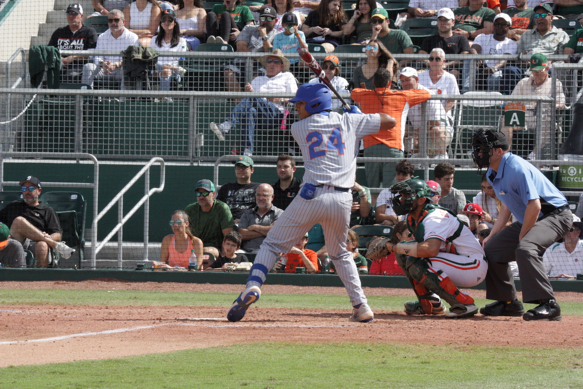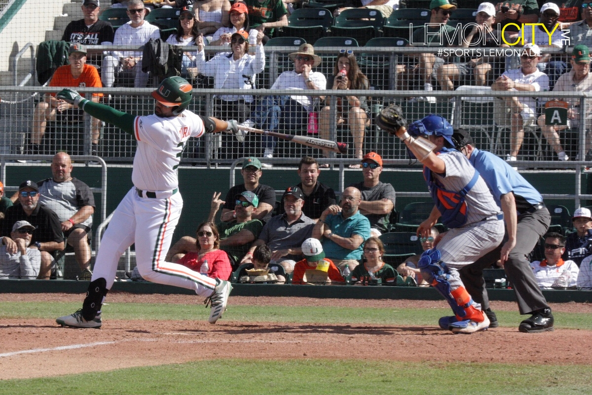 Miami, FL – What began as a weekend full of excitement and hope ended in bitter disappointment for the No. 1 Miami Hurricanes. Their offense was stifled throughout the series and Sunday was no exception. Unable to overcome the No. 2 Florida Gators, they fell 5-3 to complete the dismal sweep.