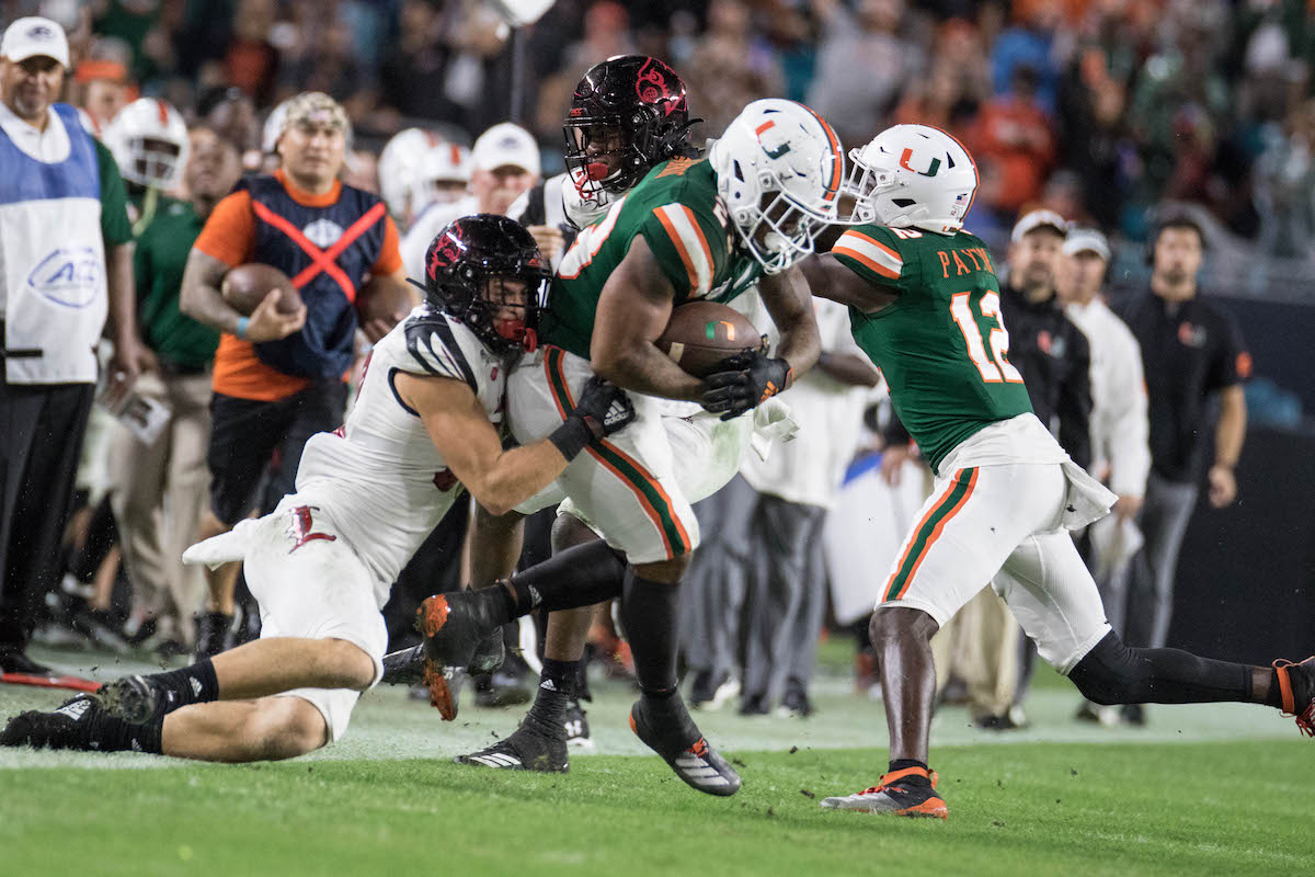 Miami, FL – In the Miami Hurricanes home finale, the Canes played their best game of the season, trouncing the Louisville Cardinals 52-27 at the Hard Rock Saturday. Jarren Williams had a career day, throwing a record-setting six touchdowns while the team tied the school record of most points in an ACC game.