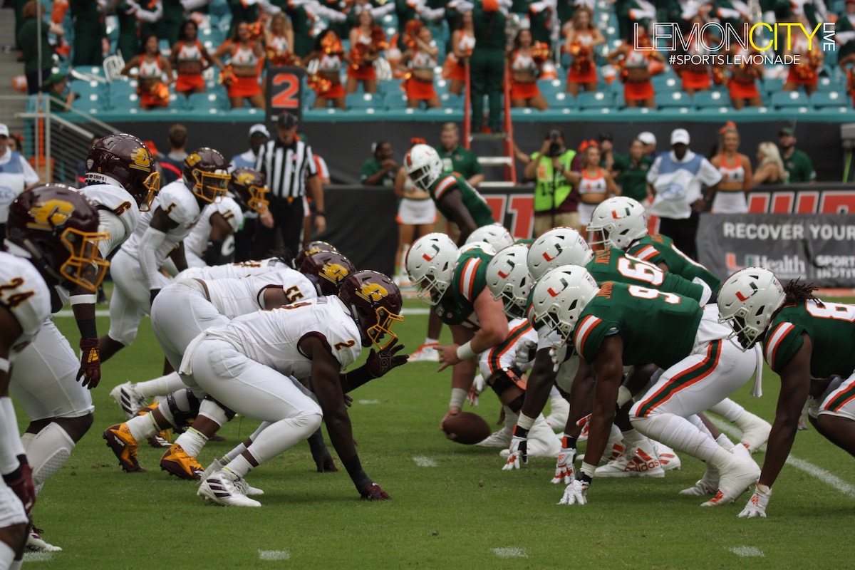 Miami, FL – The weather wasn’t the only thing that was gloomy on Saturday as the Miami Hurricanes scrapped together an ugly 17-12 win against the Central Michigan Chippewas at Hardrock Stadium. A week removed from obliterating Bethune-Cookman 63-0, today’s game was punctuated by a struggling offense and numerous penalties, the worst overall performance so far this season.