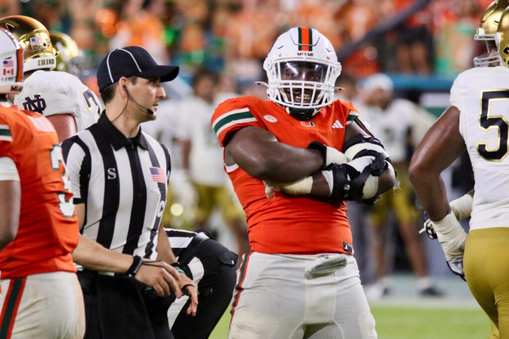 Jadarian Price’s 30-yard escape was one of the few times the defensive line was caught sleeping. UM was mostly clean with the penalties during the first half; Samson Okunlola’s holding penalty sunk Miami’s fourth possession. However, they got sloppy after halftime; granted, some of those were bad calls. The Irish pounced on the penalties, allowing the Faison TD. Fortunately, Rueben Bain ended Notre Dame’s surge, managing the crucial interception on the deflection by Scott intended for Faison.